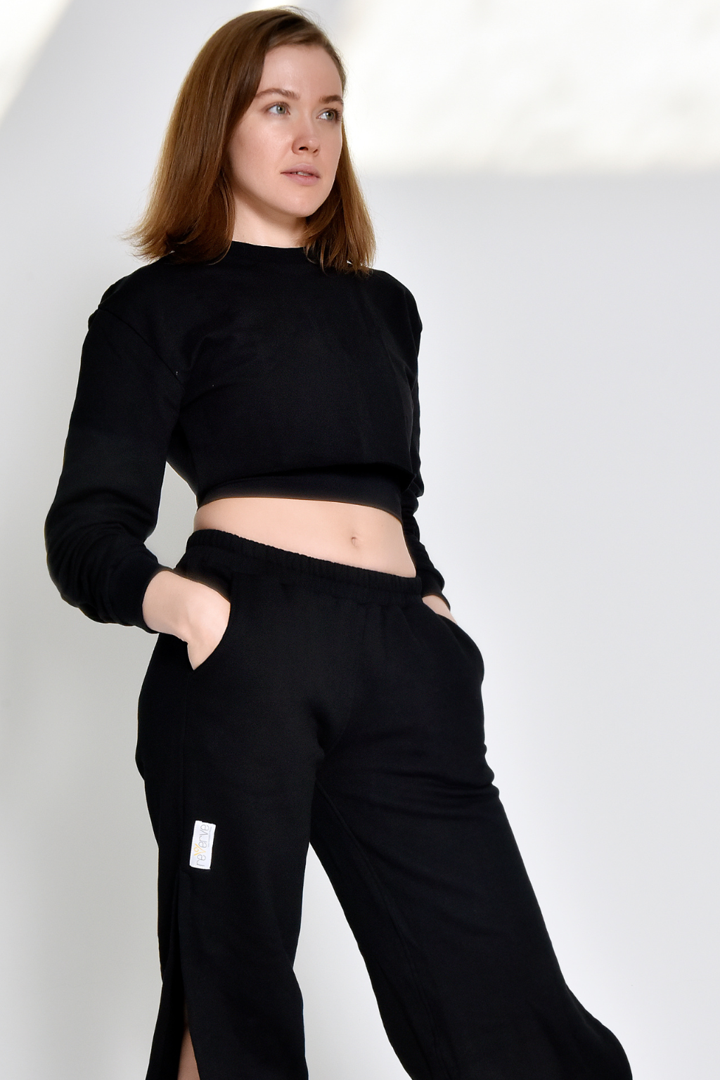 Comfy, Soft, warm is what you feel in the Lili cropped sweater… Made with the CT BABY TERRY 100% cotton and light feel. Designed with long sleeve and cropped on trend. Pair it with the matching REVA short or the Modish jogger for the ultimate fashionable look.