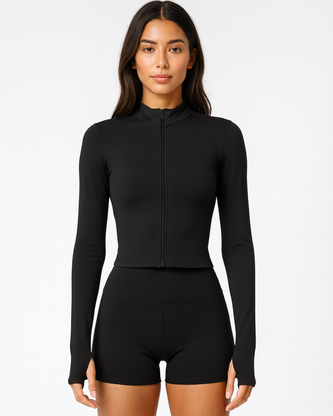 The REVERVE FORM Jacket is the essential elevated layer; sculpted, and designed for fluid movement. Made with REVERVE’s signature soft-stretch performance fabric, this jacket delivers a sleek, second-skin feel while maintaining structure and support. The high collar gives it a refined, athletic edge, while the minimalist zip closure keeps the silhouette clean and modern. The long sleeves with extended cuffs add comfort and elegance, making FORM the perfect piece for warming up, layering, or styling beyond the studio.